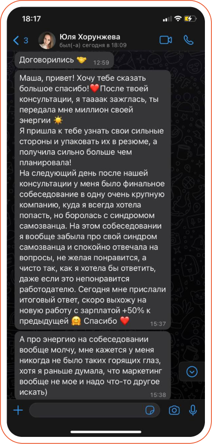 Важный момент: смена работы, карьерные изменения, увеличение дохода — конфиденциальные вопросы. Все, что мы обсуждаем на консультациях останется между нами!